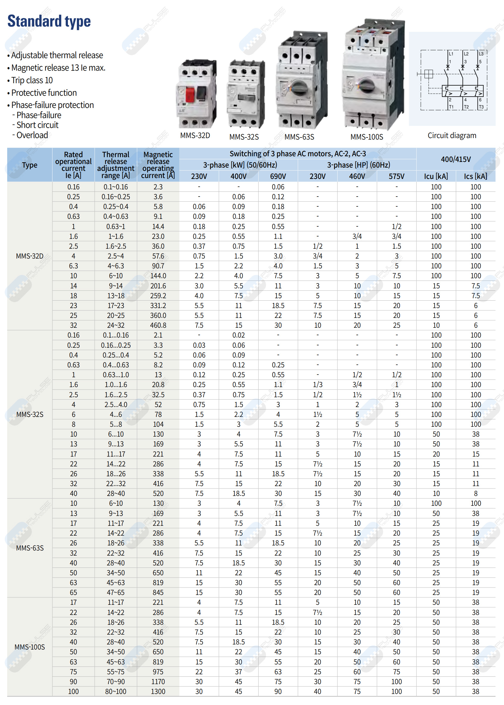 کلید 13_9 آمپر حرارتی ال اس سری MMS با کد MMS–32S 13 A _مدل S (قدرت قطع استاندارد)_قدرت قطع 50KA