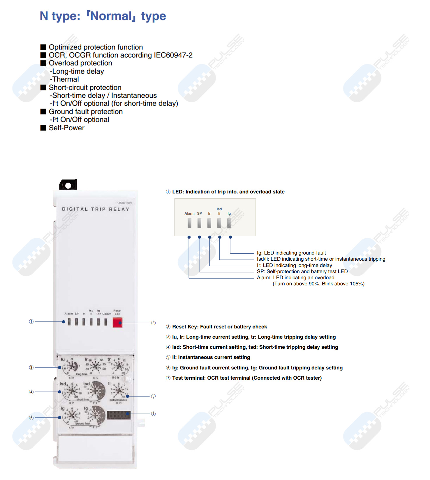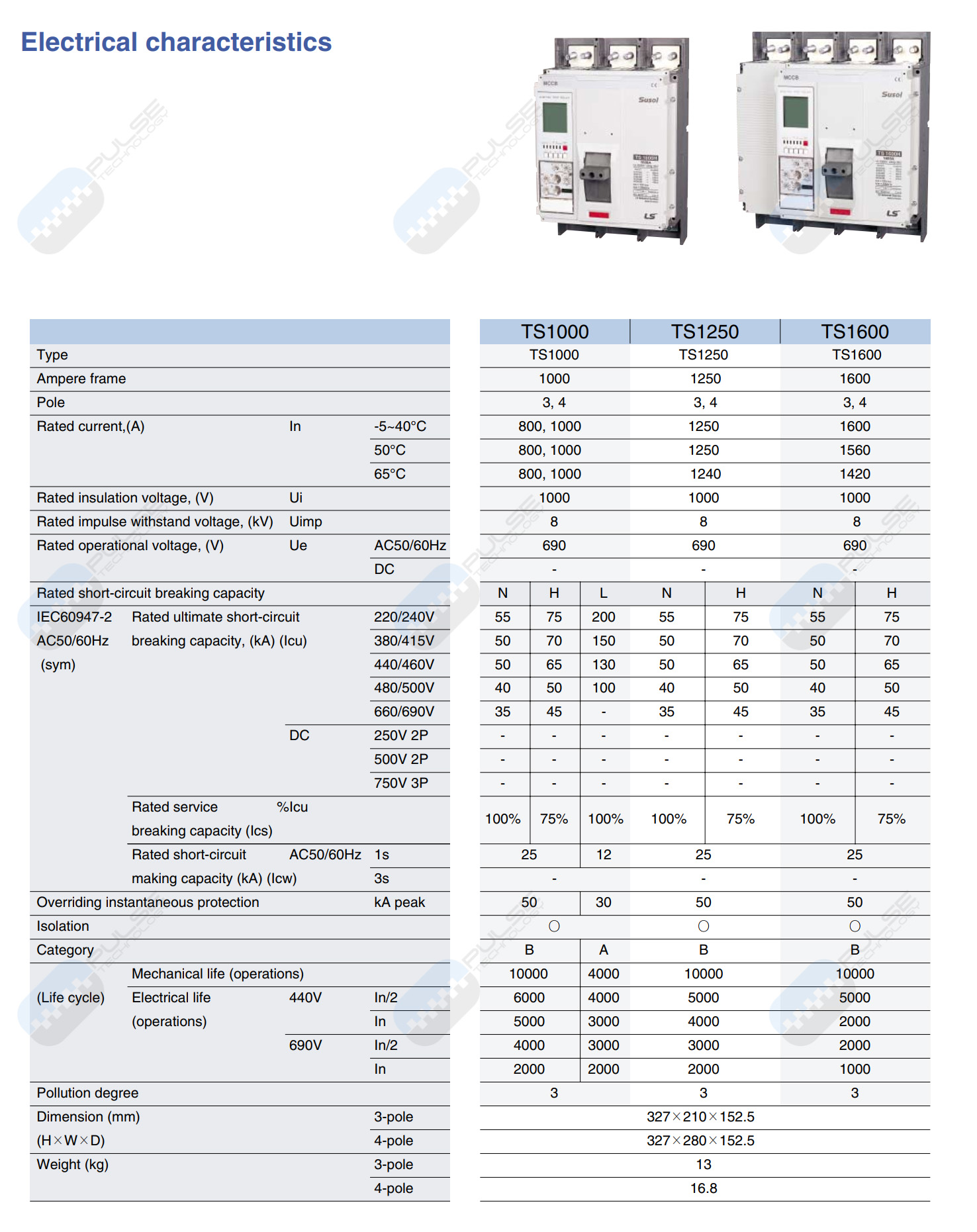 کلید 1600 آمپر اتوماتیک کامپکت هیوندای الکترونیکی (قابل تنظیم) سه پل سری TS با کد TS1600N NG5 1600 3 _قدرت قطع 50KA_تنظیم الکترونیکی: LSIG_آمپر فریم 1600